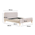 Het bedframe is verkrijgbaar in drie verschillende maten, 90 cm, 140 cm en 180 cm, zodat je de oplossing kunt kiezen die het beste bij jouw wensen en ruimte past. Bovendien kun je kiezen uit twee natuurlijke en subtiele kleuren, beige en grijs, die allebei gemakkelijk te combineren zijn met verschillende interieurstijlen