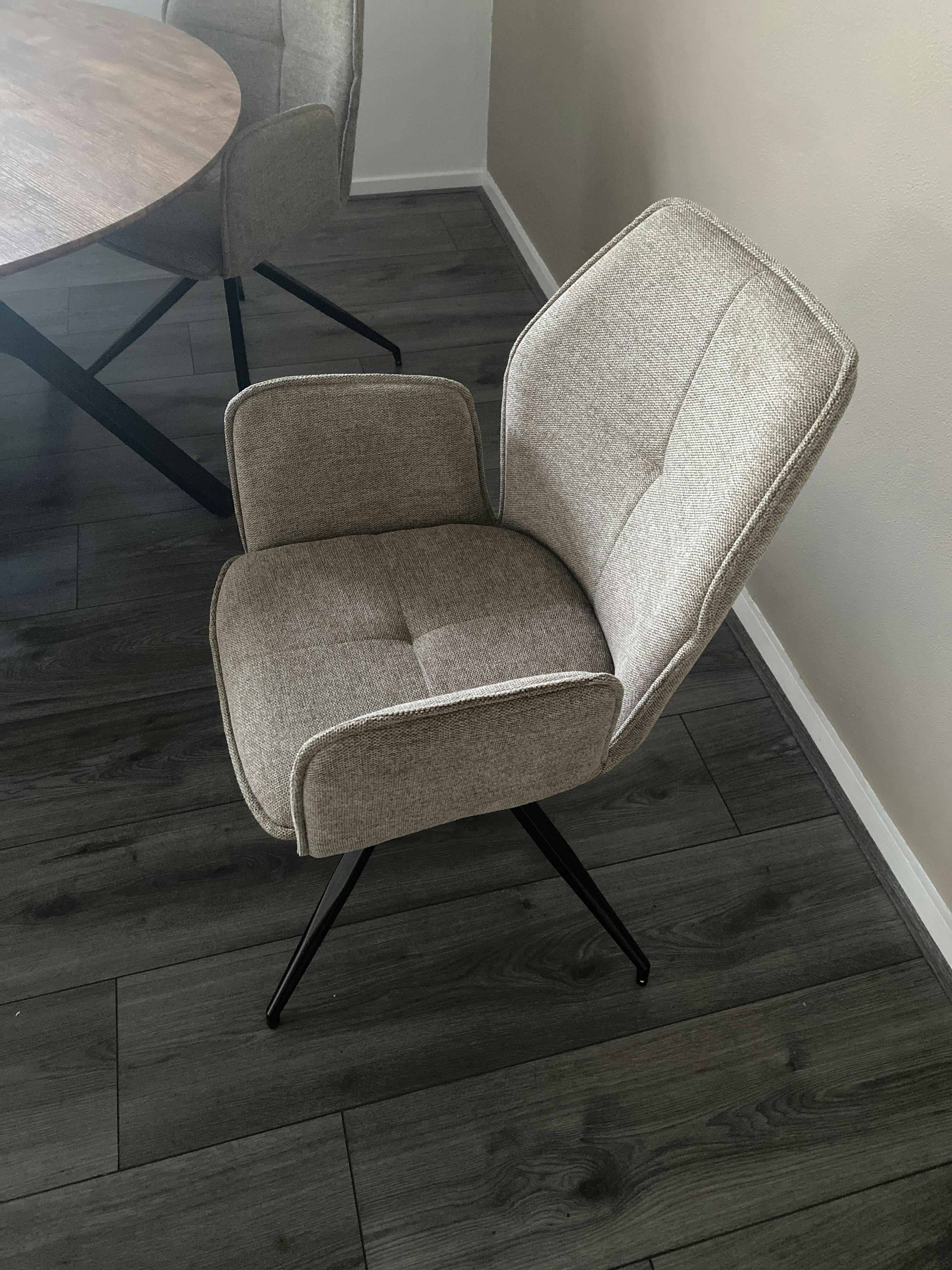 Translation missing: nl.diverse.stofproever.explainer1 Minna Eetkamerstoel - Zandkleurig textiel met 360-graden draaifunctie