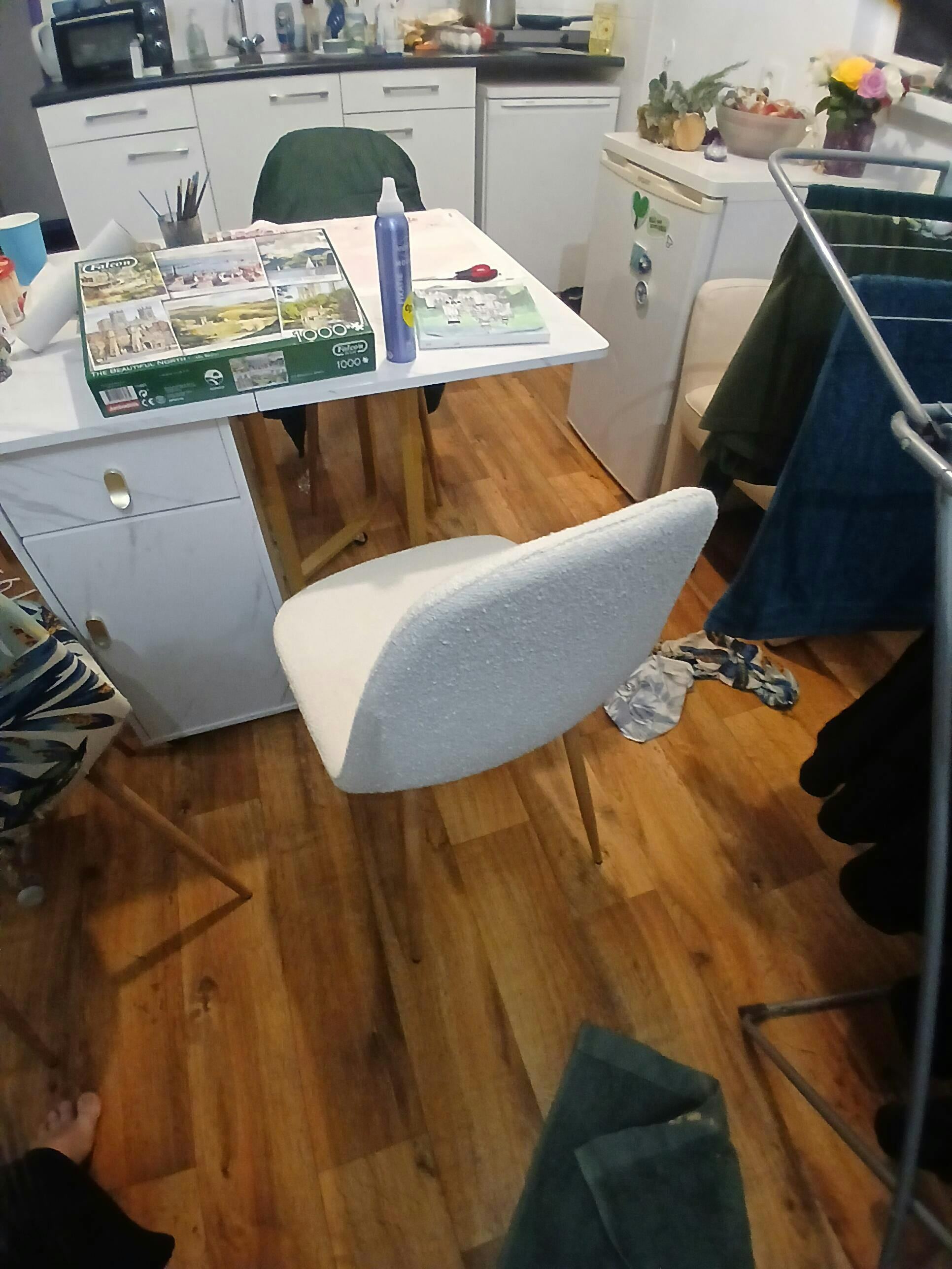 Translation missing: nl.diverse.stofproever.explainer1 Anna eetkamerstoel - wit boucle met poten in eiken look