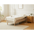 De matras is opgebouwd uit een kern van 300 bonellveren voor stabiel en stevig comfort. Het is bekleed met PU-schuim dat bijdraagt aan een aangenaam oppervlak. Het frame is gemaakt van multiplex, wat zorgt voor een goede duurzaamheid en stabiliteit in de constructie. De buitenstof is een combinatie van gebreid en geweven textiel, wat het matras een neutrale en tijdloze uitstraling geeft.
