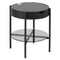 Deze stijlvolle en functionele salontafel combineert minimalistisch design met praktische opbergruimte. De tafel heeft een ronde vorm met een toplaag van zwart metaal voor een moderne uitstraling. De onderste plank is gemaakt van helder glas, wat zorgt voor een lichte en open uitstraling en tegelijkertijd extra ruimte biedt voor het opbergen van boeken, afstandsbedieningen of decoratieve voorwerpenLaagsteprijsgarantie