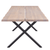 Deze Susan eettafel met twee planken en zwarte metalen kruispoten heeft een lengte van 300 cm, wat ruimte biedt voor vier stoelen aan elke kant.