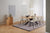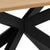 Het onderstel bestaat uit een opvallend kruisframe van matzwart gepoedercoat staal dat voor stabiliteit zorgt en de tafel een moderne, industriële look geeft. De combinatie van de warme houten afwerking en het ruwe staal zorgt voor een stijlvolle uitstraling die zowel in klassieke als eigentijdse huizen past