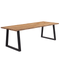 Deze Esther eettafel met twee planken en zwarte vierkante metalen poten is 240 cm lang, wat voldoende ruimte biedt voor drie stoelen aan elke kant.
